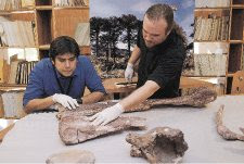 En Santiago Rubilar y Vargas pasaron casi 10 años trabajando en el ejemplar. Viajaron a Argentina y a Brasil para revisar las colecciones de los restos de saurópodos titanosaurios recuperados que están guardadas en los museos de esos paises.